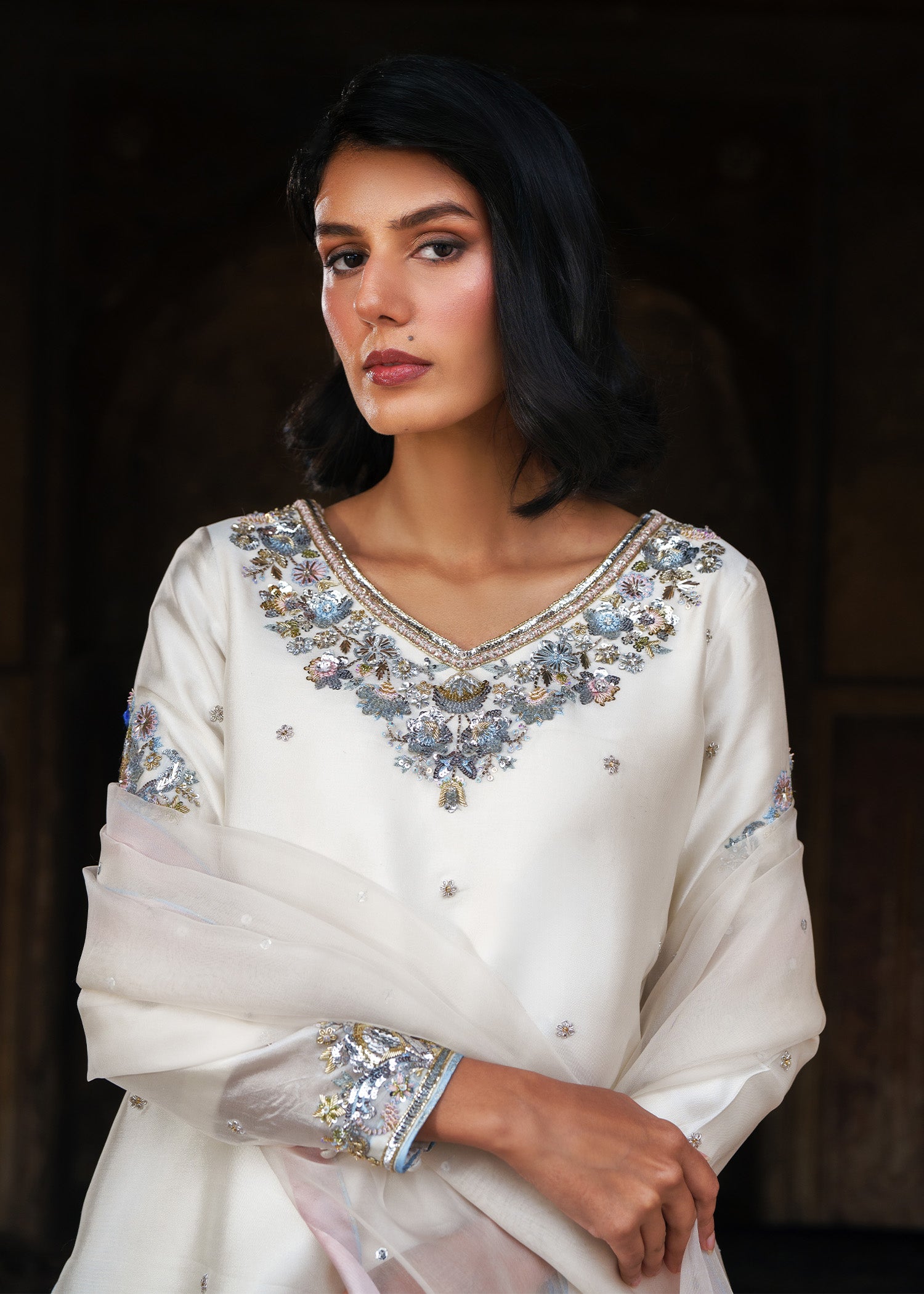 Disclaimer: Materials sourced from the market, e.g, Mukesh pattern of dupatta, are subject to availability. If the same option is not available, the brand will share alternate options that match the closet.